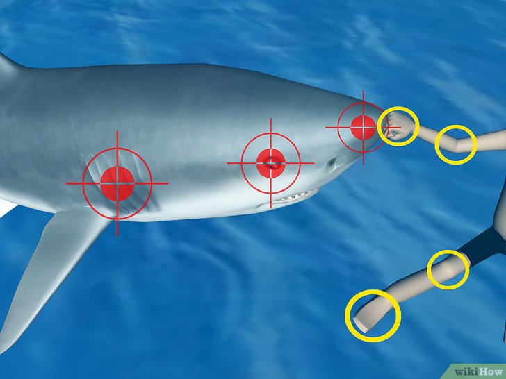 - En el caso del buceo con tiburones en algunas zonas, los buceadores llevan palos para ahuyentarlos si se ponen un poco agresivos, generalmente basta con apoyar el palo en la punta del hocico del tiburón, una zona muy sensible para ellos y estos huirán. Si no se dispone de palo se puede hacer huir al animal empujándole o golpeándole en el mismo punto.